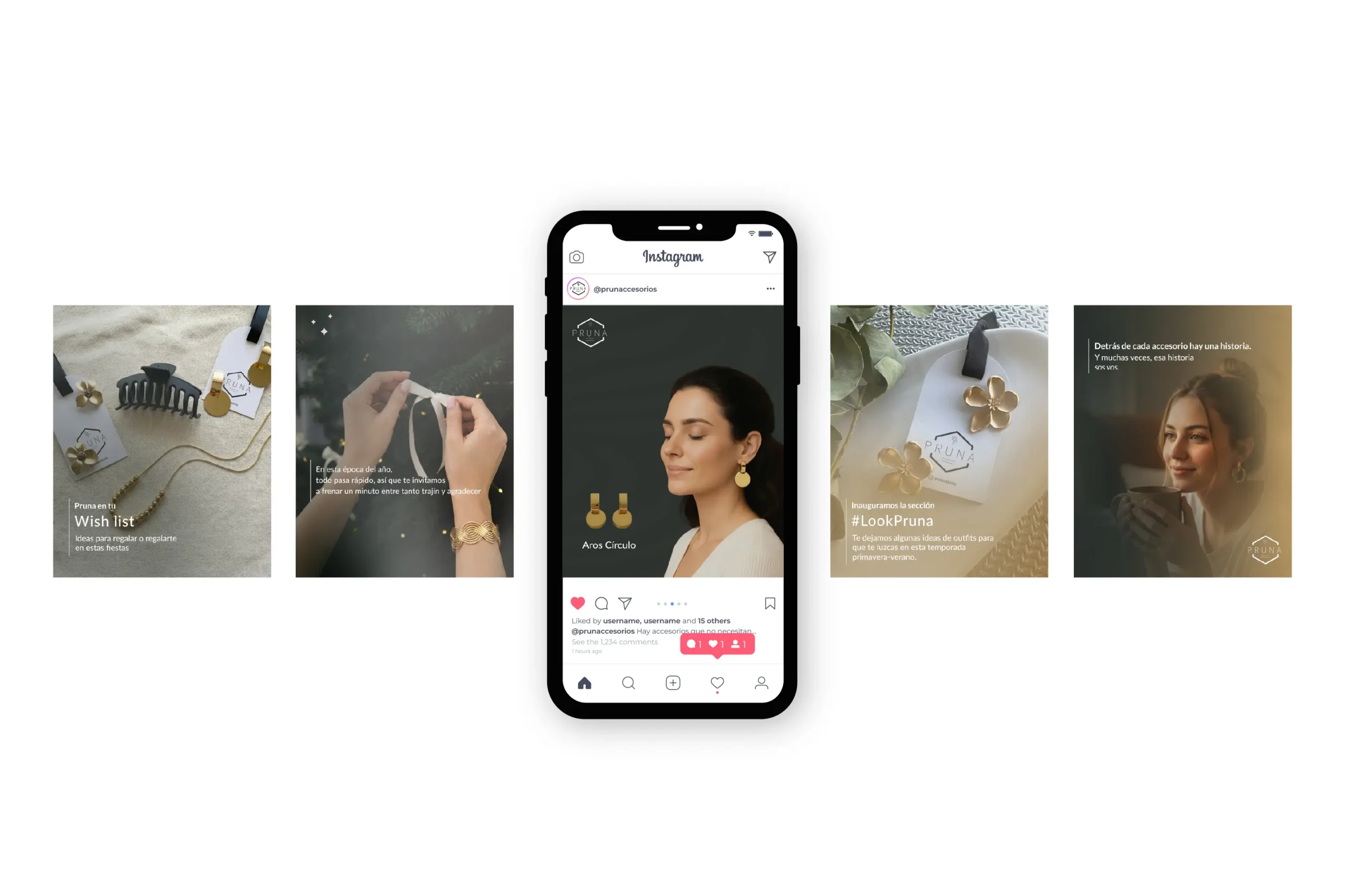 Community Management completo para Pruna Accesorios, marca de accesorios de moda. Desarrollamos una estrategia de contenidos enfocada en posicionamiento digital, crecimiento en redes sociales y conexión con su público objetivo.
